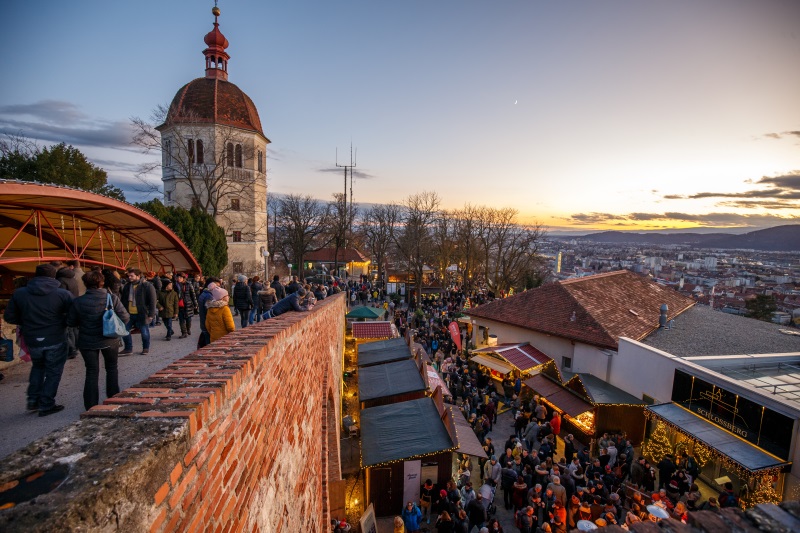 Ne gre pa pozabiti niti na Aufsteirern Advent na grajskem griču, ki obiskovalcem ponuja tradicionalno štajersko rokodelstvo, regionalne dobrote in čudovit razgled na praznično mesto.