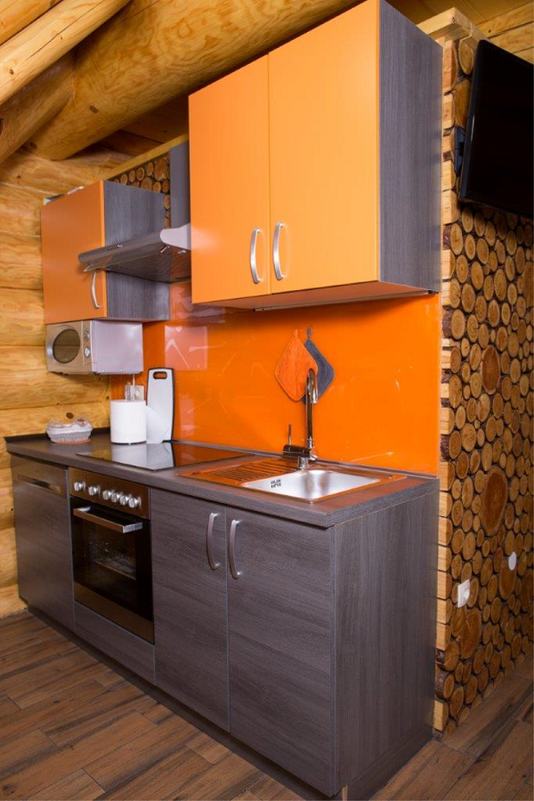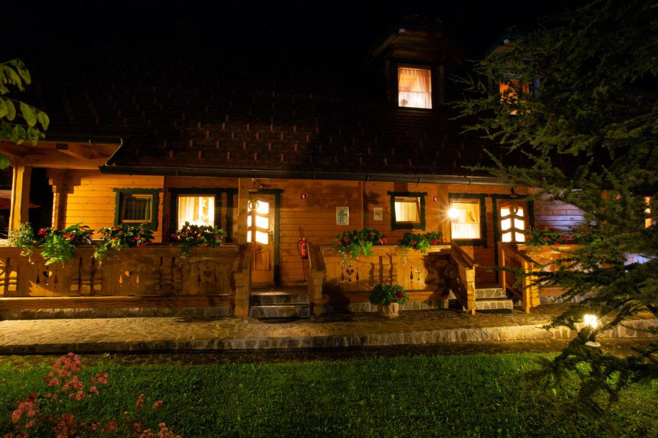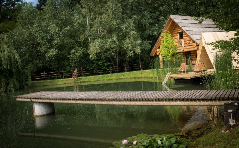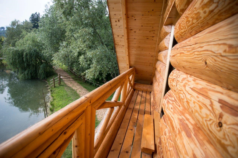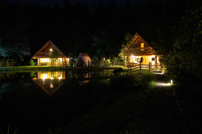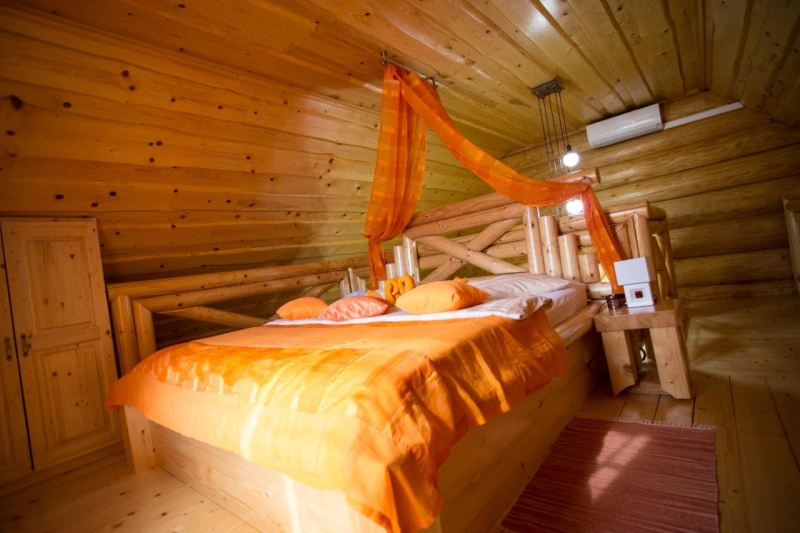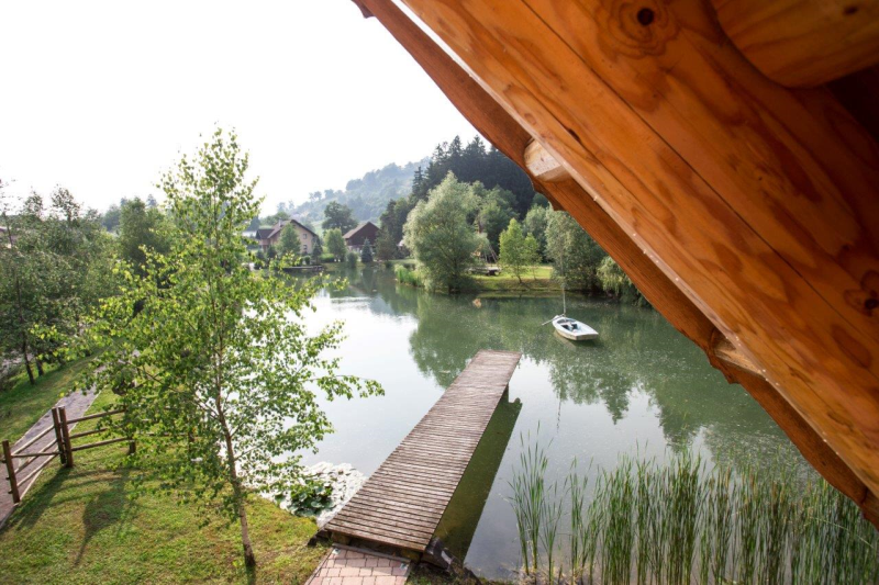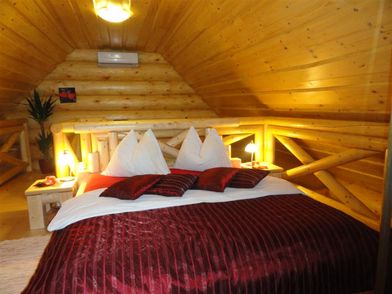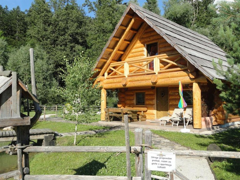Apartma Luna je samostojna hiška iz lesenih hlodov, velika cca 70m2. Stoji ob jezeru, približno 100m od recepcije. V pritličju je bivalni del s kuhinjo, jedilnico in dnevnim prostorom ter kopalnica, na odprti galeriji pa je urejena spalnica z vodno posteljo. V apartmaju sta 2 LCD TV, klima, kamin.