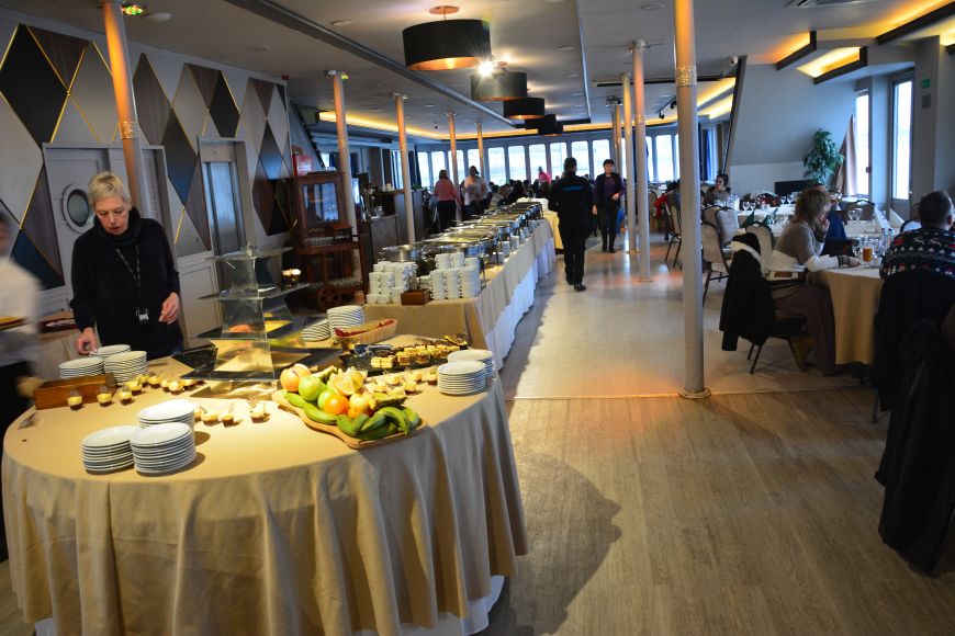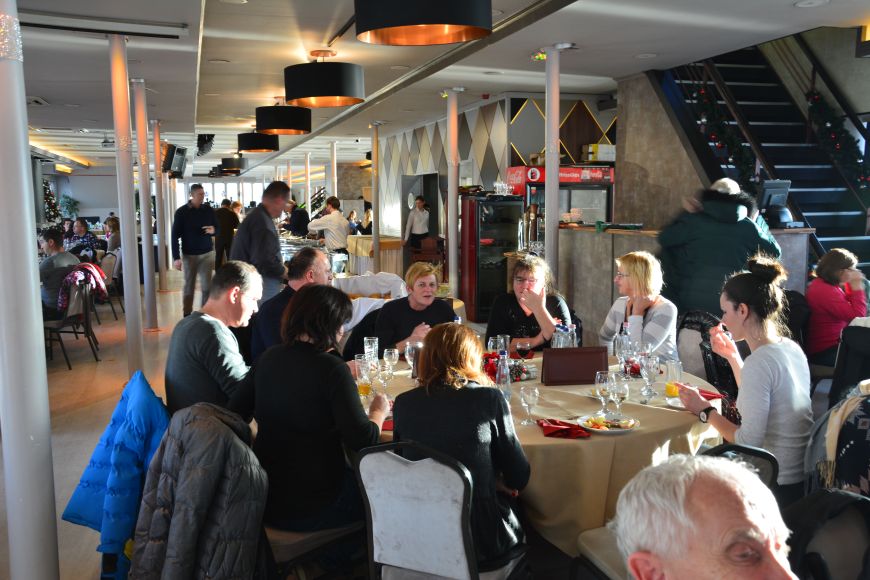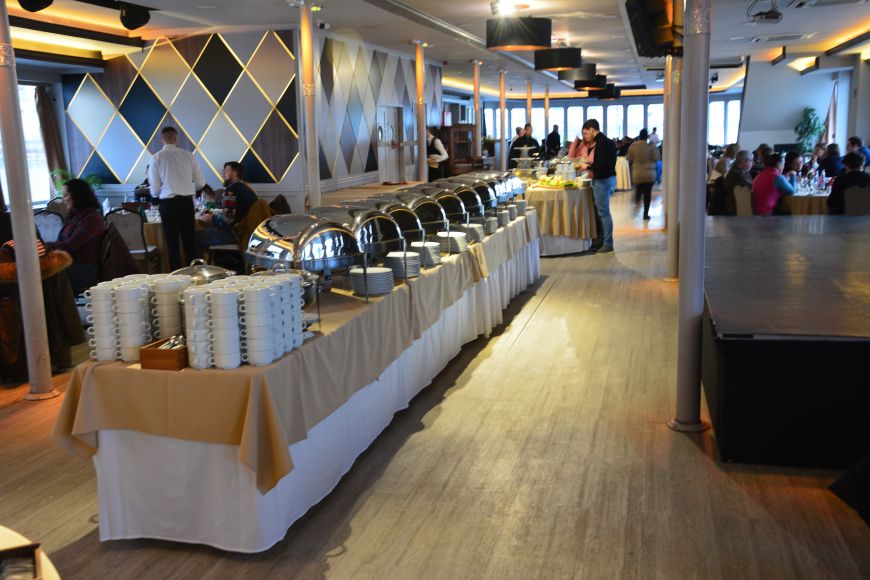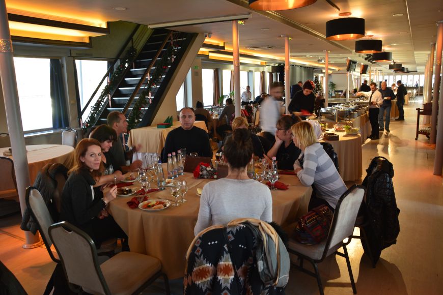Turistične ladje, ki plujejo po Donavi, so bistveno večje od tistih na Ljubljanici. Lahko bi rekli, da so velike, ugledne restavracije na vodi. Uro in pol smo se vozili mimo glavnih znamenitosti Budimpešte, ki smo si jih ogledovali kar izza miz, za katerimi smo sedeli. Vožnja poteka zelo umirjeno brez kakšnega koli valovanja. Vmes pa smo razvajali brbončice s samopostrežnim kosilom, čakala nas je res pestra izbira jedi.