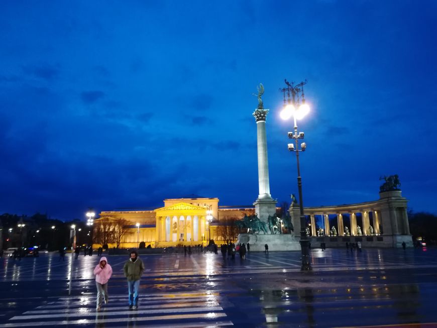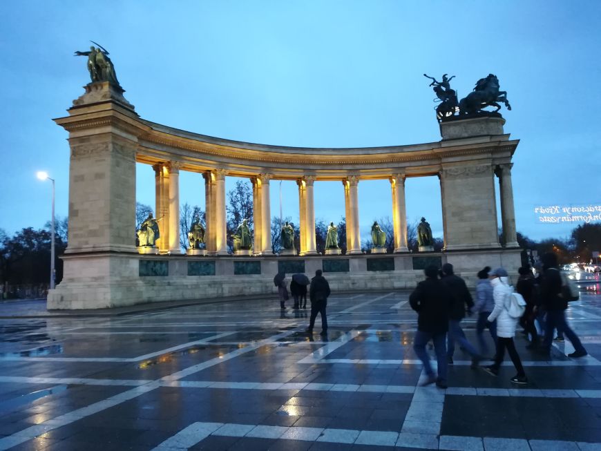 Odpeljali smo se do Trga herojev, kjer stoji ogromen spomenik, na katerem čepi nadangel Gabriel. Vodič nam je pri kipu vsakega madžarskega kralja predstavil, kako se je zapisal v zgodovino. Med njimi je bil tudi slavni kralj Matjaž oz. Matija Korvin, o katerem je tudi kup slovenskih pripovedk.