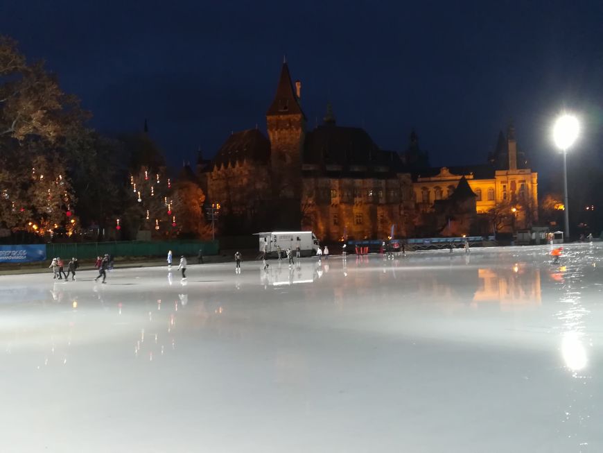 Le nekaj korakov stran od Trga herojev je naravno drsališče s prelepo okrašenim mostom in pravljičnim gradom Vajdahunyad.