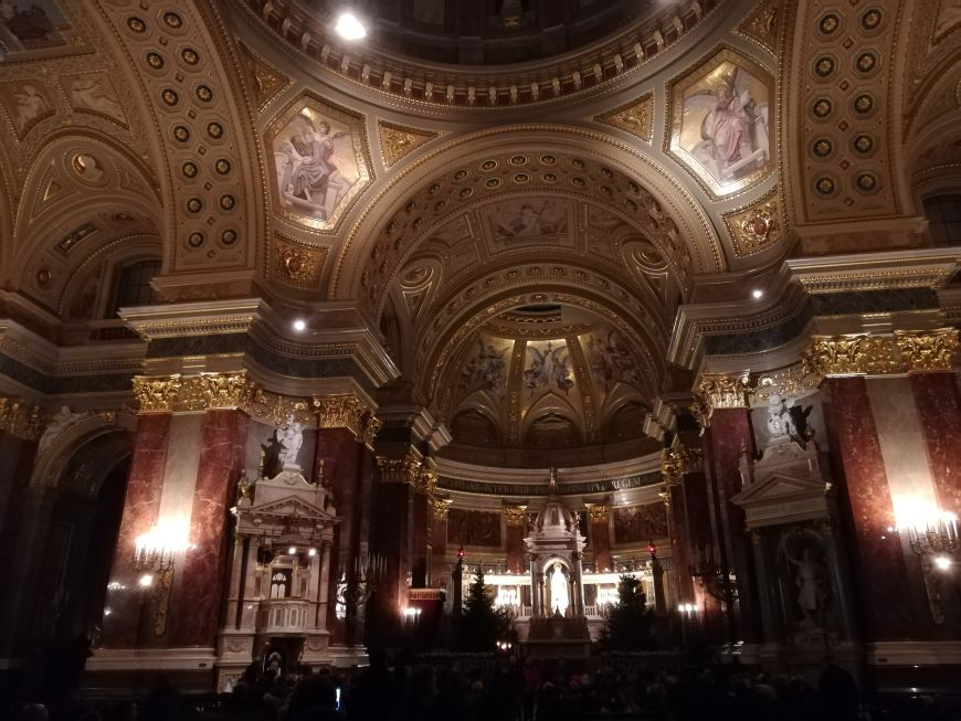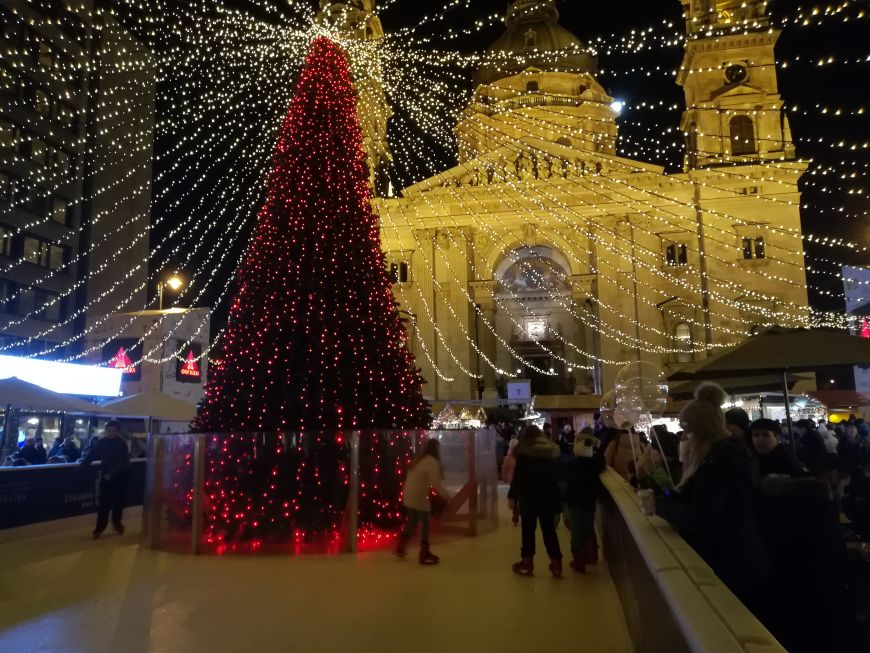 Bazilika Svetega Štefana je ena najlepših cerkva v Budimpešti, ki ti jemlje dih. Pred njo se odvija živahen božični sejem s stojnicami, kjer sva si privoščila kozarček kuhanega vina. Kupila sva si tudi ročno izdelane jaslice za spomin. Pod smrečico na sejmu je mini drsališče, kjer so otroci veselo drsali v krogu. Če ste v Budimpešti v adventnem času, je to definitivno kraj, kjer se morate ustaviti vsaj za kako uro.