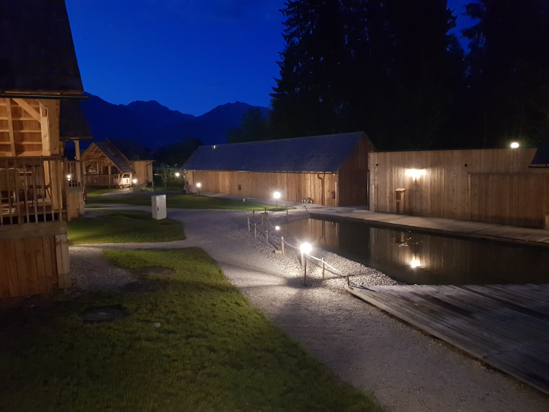 Drugo noč sva prebila v eni od 17 luksuznih glamping hišic, ki že na prvi pogled obljubljajo čaroben in nepozaben oddih. Vsaka hiška ima svojo kopalnico z infrardečo savno, na terasi pa še lastno leseno kad s toplo vodo. V hiškah lahko bivajo do 4 osebe, saj sta poleg zakonske postelje v zgornjem delu na voljo še dve ležišči. Lesene hiške pričarajo neko domačnost in tista lesena kad na terasi kar kliče, da jo čimprej preizkusiš…
