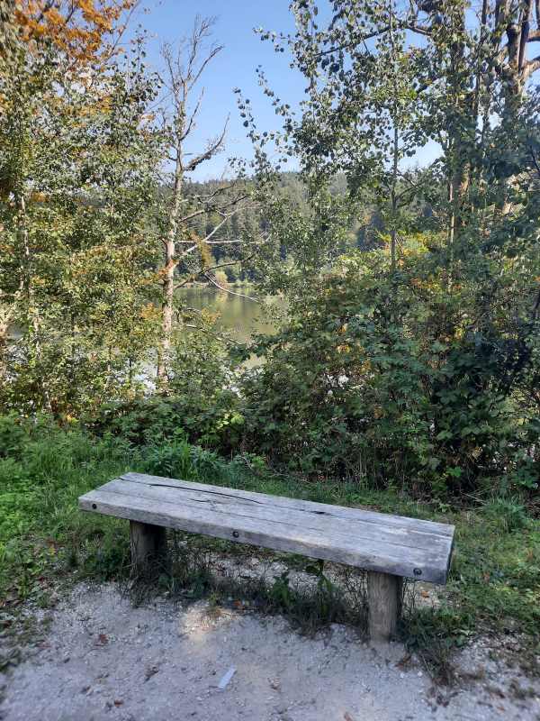 Večino časa so se nama ob poti odpirali lepi pogledi na jezero, na zahodni strani jezera pa se pot umakne v gozd. Pot je precej ravna, z nekaj res manjšimi vzponi, zato je primerna za vse, tudi za majhne otroke in starše z vozički. Ob poti je tudi nekaj lesenih klopi, v gozdu pa stoji tudi vodnjak, kjer lahko potešite žejo.