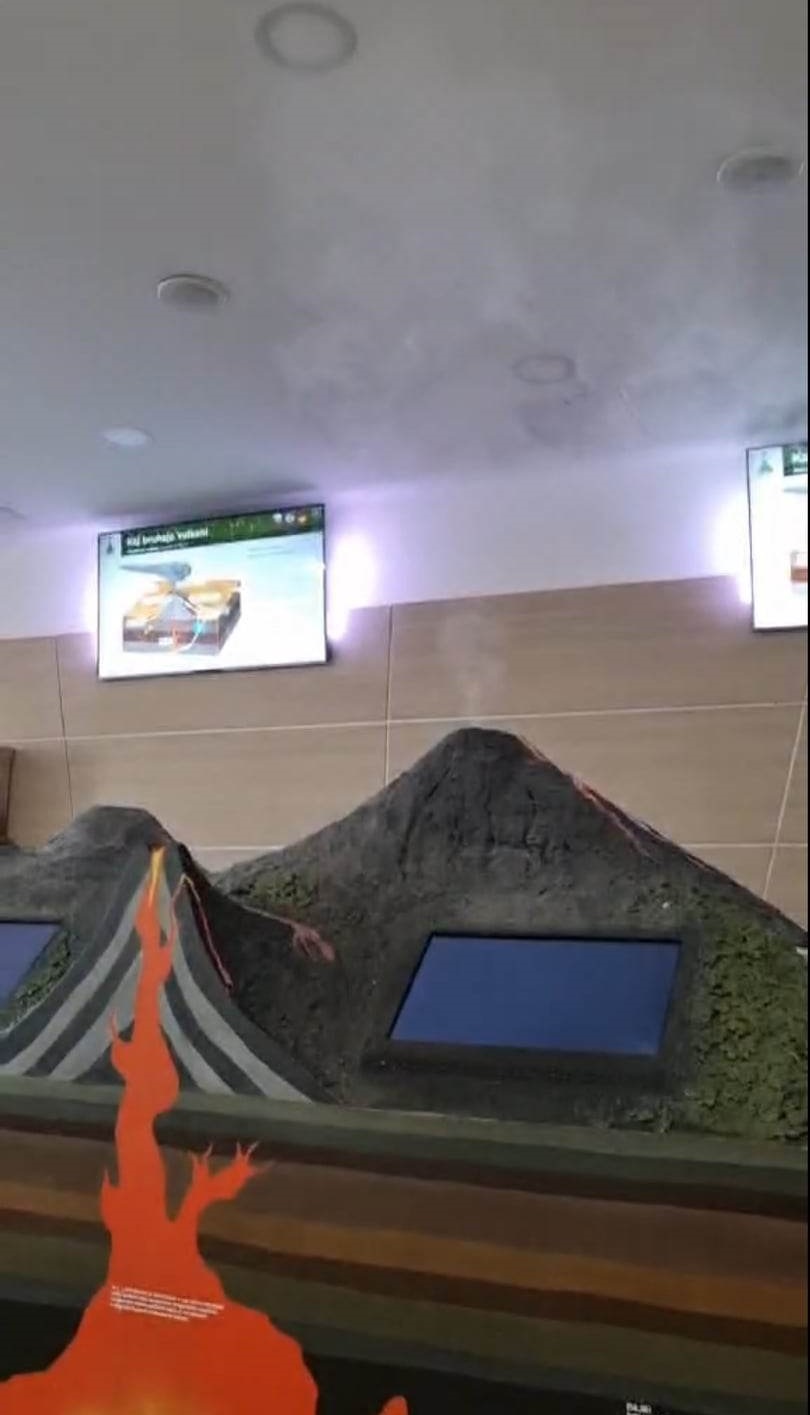 Prva znamenitost, ki sva jo obiskali, je bila Vulkanija; v njej sva si ogledali dva kratka filma – o delovanju vulkana in o nastanku Zemlje. Zanimivo je predvsem dvigalo, ki te spusti v notranjost Zemlje, in pa geode, prinešene iz Brazilije. Na koncu ogleda sva imeli tudi sami priložnost kupiti kako kamnino, zlato ali srebro. V Vulkaniji so naju prijazni vodiči popeljali v virtualno resničnost, pri tem pa naju je spremljal tudi krtek Oli. Oli je dobil ime po kamnini olivin, ki je zelene barve, spremljal pa naju je tudi v Geološkem muzeju. Muzej se nahaja tik ob Vulkaniji in si ga je priporočljivo ogledati, saj v njem spoznaš različne vrste kamnin.