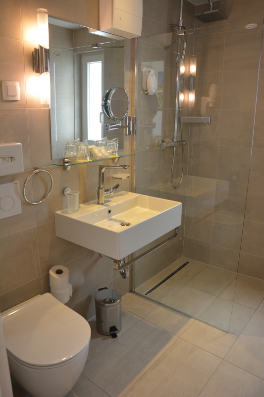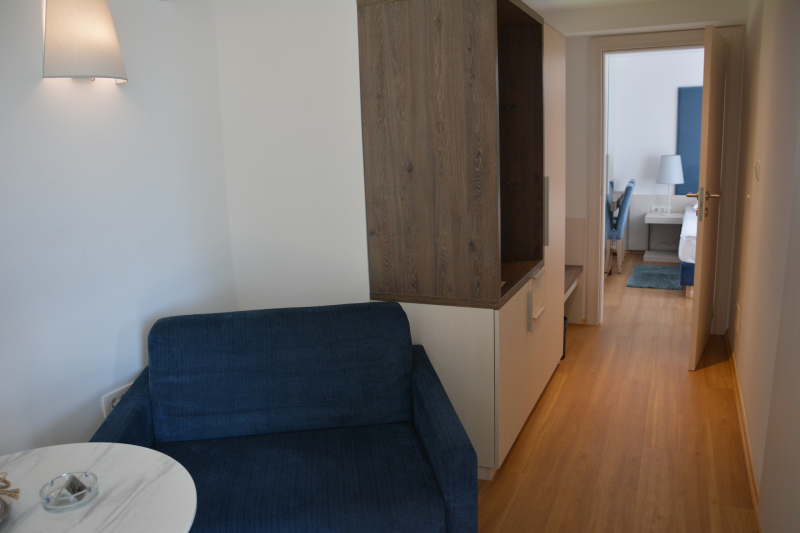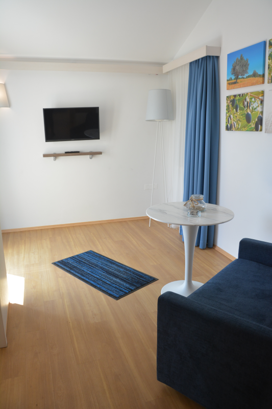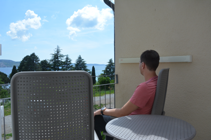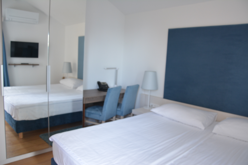 Soba je bila prostorna in izjemno moderno opremljena. Že na prvi pogled je opazno, da je oprema čisto nova, saj so nekatere suite prenovili lani, nekatere pa letos. V predprostoru sva imela udoben kavč in televizijo, ločeno pa se je nahaja še spalnica. V kopalnici naju je najbolj očaral velik in prostoren tuš, izkoristila pa sva tudi majhno teraso, na kateri sva ob večerih uživala ob pogledu na zahajajoče sonce in slovensko obalo.