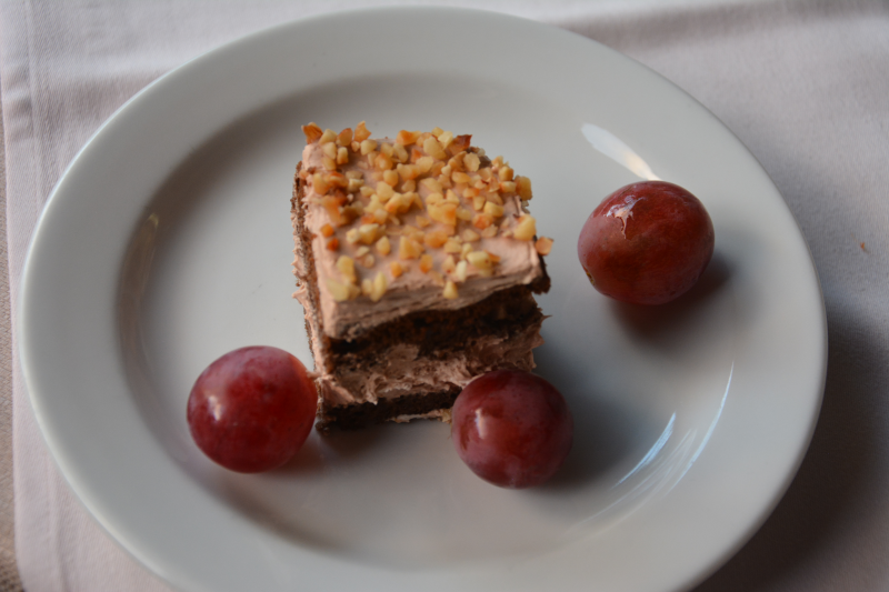 Vse obroke sva imela v centralnem hotelu Convent. Prvi dan sva si izbrala mizo, ki sva jo nato imela za vse obroke skozi celoten čas bivanja.  Na izbiro sva imela pestro ponudbo, od mediteranske hrane do testenih in klasičnih jedi. Z veseljem sva si privoščila tudi kako sladico ali pa sveže sadje.