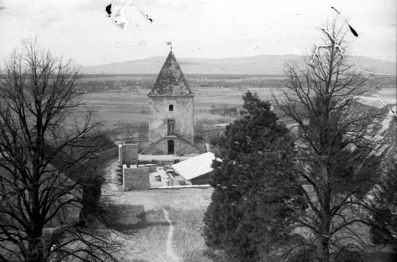 Slika 11 in 12: Nemški vojni ujetniki in njihovi stražarji na delu na ptujskem gradu leta 1946. Pogled na pokrito »staroslovansko svetišče« okrog leta 1949.