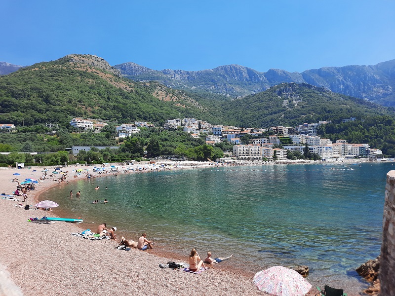 Popoldne smo obiskali in raziskali še Budvo. Seveda nismo mogli mimo obiska slovite Slovenske plaže. Gre za najdaljšo in najbolj priljubljeno plažo v Budvi, kar smo hitro opazili tudi sami, saj smo imeli že kar resne izzive v bližini poiskati prosto parkirno mesto. Drugi del izziva pa je bil poiskati prosto mesto za naše brisače. Zelo težko si boste na tej plaži privoščili, da bi bili vaši sosedje več kot 2 centimetra stran od vaše brisače. Promenada ob plaži je najbolj živahen del mesta, kjer najdete  številne lokale, stojnice s spominki, pijačami, prigrizki in drugimi domačimi izdelki.