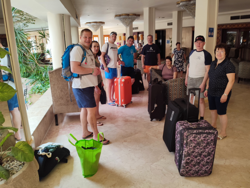 Člani in prijatelji Potapljaškega kluba Mehurček smo se odpravili na potapljanje v Hurgado – skupno 19 oseb. Štartali smo z mrzlega Brnika, kamor smo se pripeljali s kombiji v lastni organizaciji in čakali na potovanje v tople kraje. Čakal nas je miren polet, super pristanek in veselih obrazov smo pristali v Hurgadi. Počitnice so se začele!