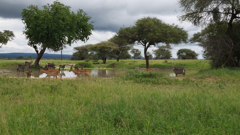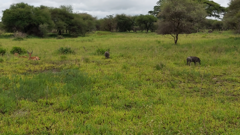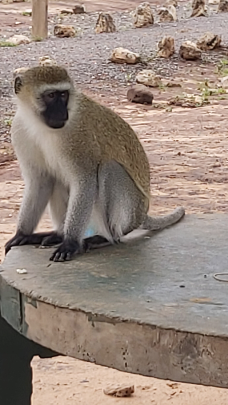 Kasneje smo opazili še surikatam podobne živali, pumbe (podobne divjim prašičem), antilope in zebre. Bilo je čudovito! Širna savana, svoboda, nikjer nikogar. Kot se spodobi za kralje, smo z džipom zapeljali do postojanke, kjer nam je šofer pogrnil mizo in v hipu je bilo vse pripravljeno – kot pri mizici pogrni se. Serviral nam je afriško kosilo in jedli smo kar sredi savane. S sosednje mize je opica ravno ukradla banano, turistka pa se je le smejala.