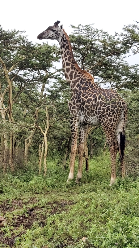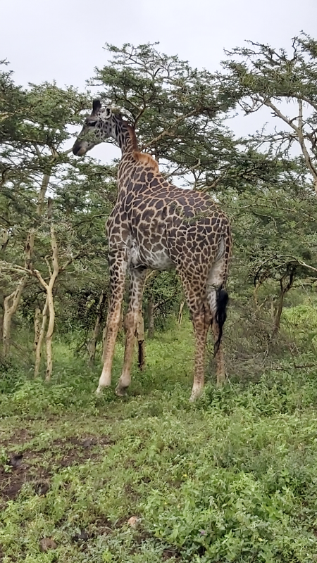 Odpeljali smo se dalje. Tokrat sem oživela jaz, ko sem zagledala žirafe. Opazila sem, da se samci razlikujejo od samic, poleg tega, da so malo večji, imajo tudi drugačen vzorec: temnejše lise. Nato smo ugledali najtežjo kopensko živa na svetu – slona.