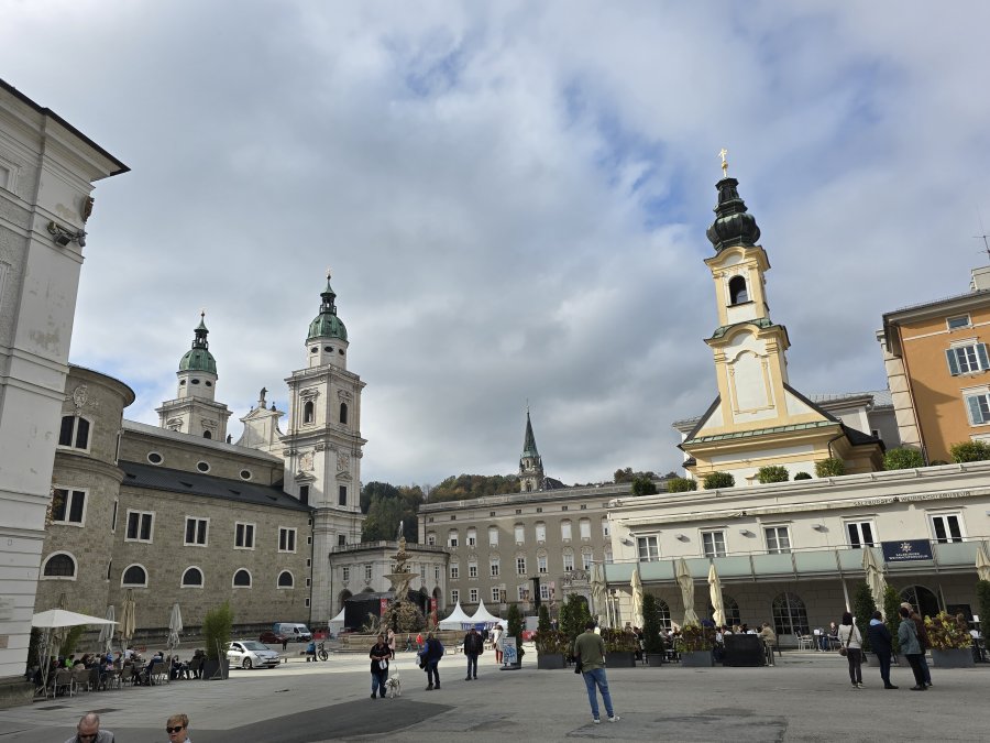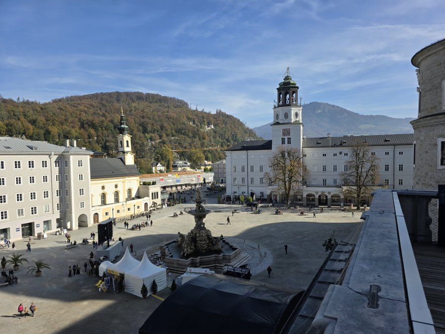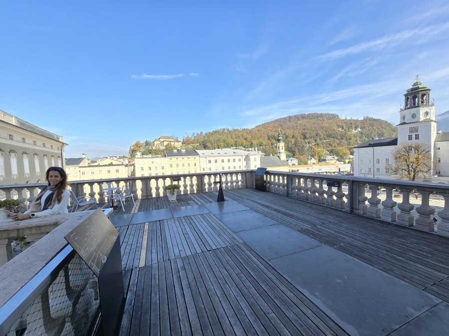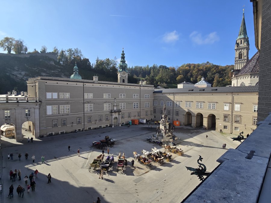 Salzburg je bil stoletja dejansko mini kraljestvo, ki so ga vodili knezoškofje – kombinacija verskega in posvetnega vodje. Imeli so ogromno moč, saj so delno odgovarjali papežu, delno pa so si ustvarili skoraj kraljevsko vlogo in bili popolnoma neodvisni od avstrijskih vladarjev. Knezoškof Wolf Dietrich von Raitenau, na primer, si je privoščil razkošno življenje, gradil palače, in celo skril ljubico Salome Alt z njunimi petnajstimi otroki! Z razgledne terase se odpira čudovit razgled na bližnje trge in cel kompleks cerkvenih stavb.