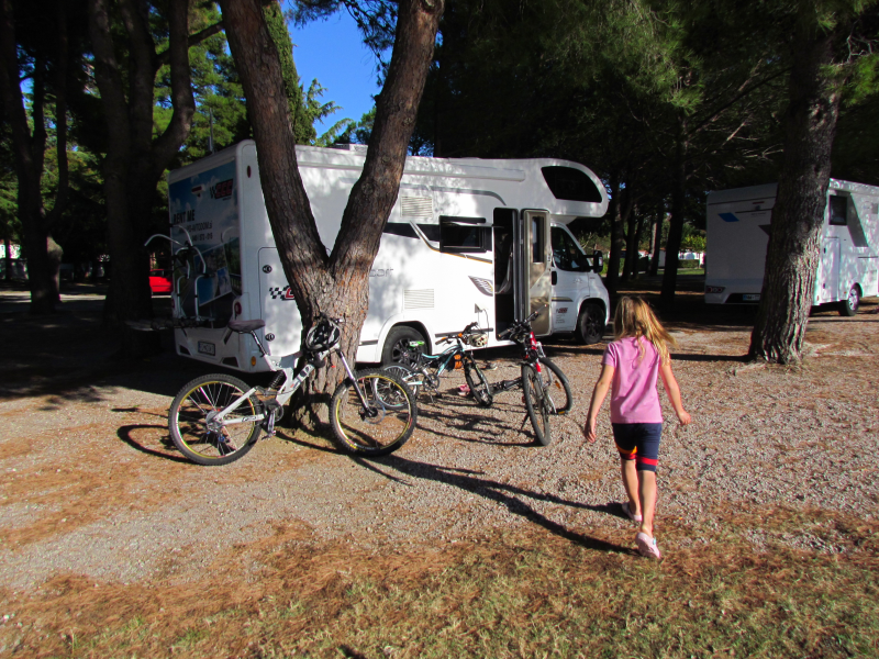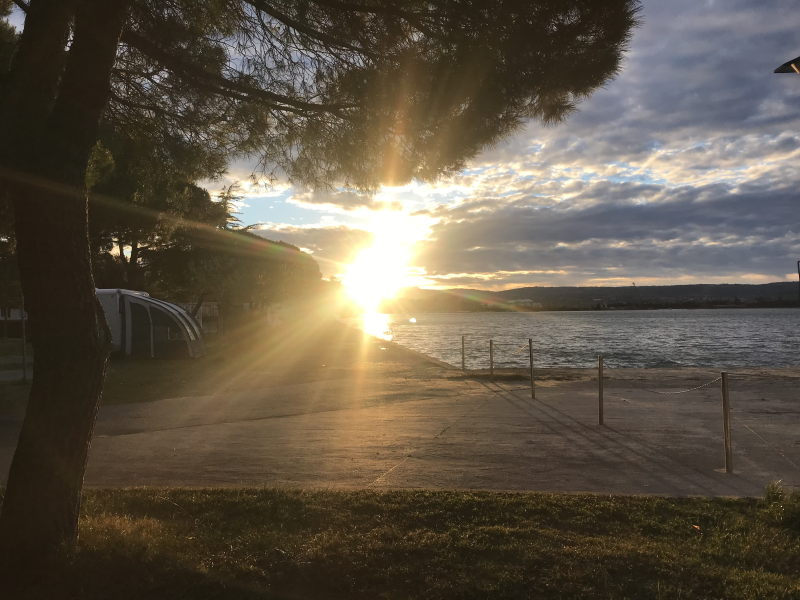 V kampu Adria Ankaran smo si ob prihodu lahko kar sami izbirali parcelo – seveda smo izbrali eno takšnih, ki leži tik ob morju. To je velika prednost potovanja izven sezone.