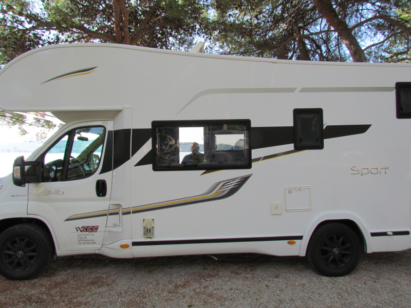 Ob prevzemu avtodoma Benimar Sport in po prijazni predstavitvi vseh pomembnih funkcij v avtodomu – od gretja do uporabe stranišča in vklopa vodne črpalke – smo se v petek popoldne odpravili proti obali.