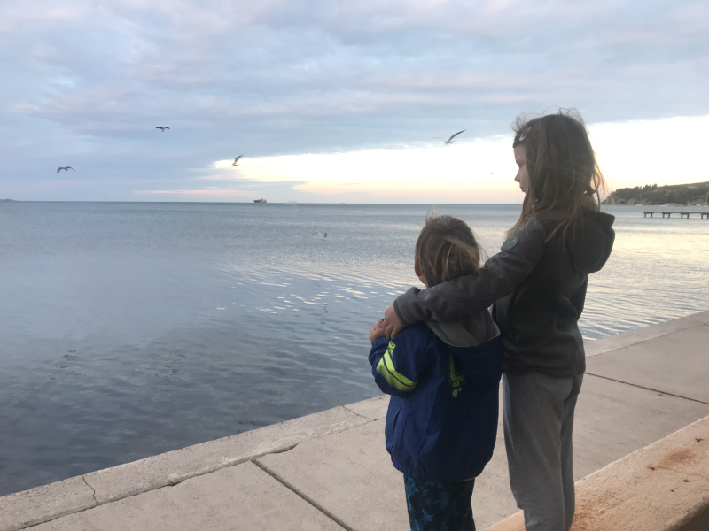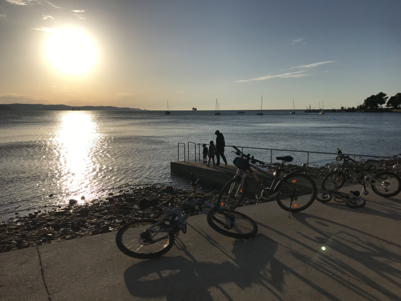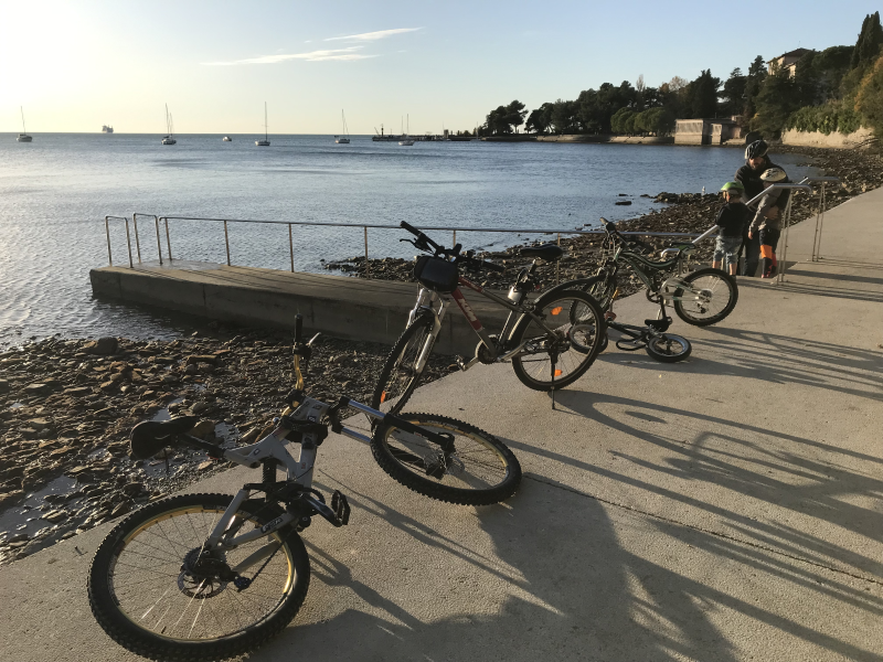 Ker smo potovali z avtodomom, smo lahko nanj enostavno namestili vsa kolesa. Tako smo se popoldne odpravili še na izlet s kolesi po Debelem rtiču, kjer smo si želeli pogledali predvsem »Rocky beach« in dočakati sončni zahod. Teh se res nikoli ne naveličamo. Ob misli, da bi sedaj sicer bili doma in opazovali sivo, turobno novembrsko nebo, smo bili hvaležni, da temu ni tako in da lahko ujamemo nekaj sončnih žarkov ter res lepih pristnih morskih trenutkov.